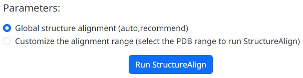 2. After clicking the 'Upload Files' button, you have the option of global alignment (the default) or custom range alignment. If you want to perform global alignment, there is no need to input additional parameters. Simply click the Run StructureAlign button to continue